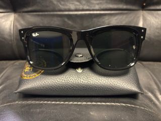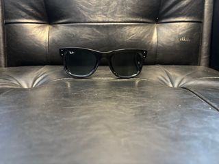 Gafas de sol Ray-Ban con montura negra y lentes verde oscuro. - Diseño moderno y elegante. - Logo de la marca grabado en las lentes.