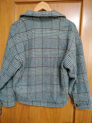 Chaqueta estilo bomber de Mango con estampado de cuadros. - Diseño de cuadros en tonos grises y marrones. - Cierre de botones. - Dos bolsillos en la parte delantera. - Apenas usada. - Envíos por inPost. No los hago por Correos.