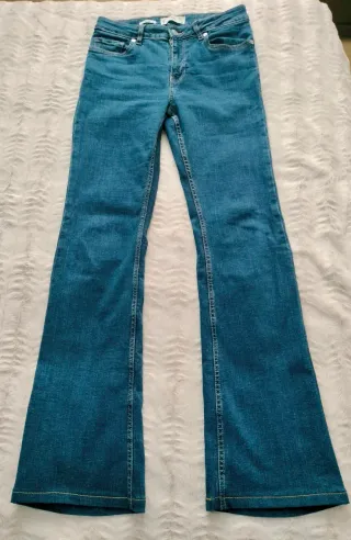 Vaqueros de corte flare de Mango. - Usados en dos ocasiones. - Tejido vaquero elástico. - Diseño de cinco bolsillos. - Cierre con cremallera y botón. - Costuras a contraste. - Envío a través de inPost no por Correos.