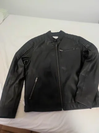Cazadora de polipiel para hombre. El cuello por dentro está un poco deteriorado. - Diseño moderno. - Cierre de cremallera. - Bolsillos con cremallera.