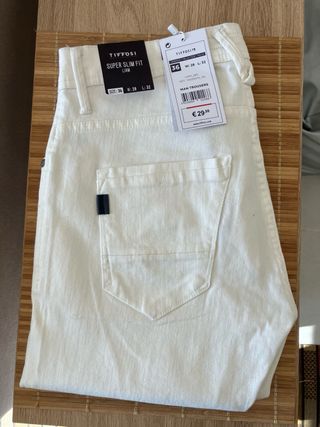 Vaquero Tiffosi para hombre, 5 bolsillos, con cremallera y botón metálico - Corte super slim fit. - Talla 36 (W: 28 L: 32). - Color blanco. - Modelo LIAM 285.