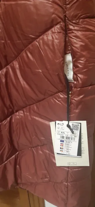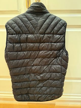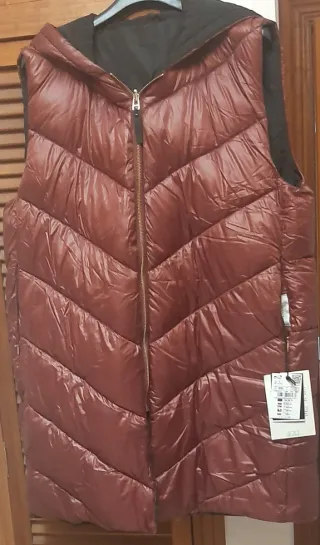 Chaleco reversible de la marca Cortefiel. - Diseño acolchado con líneas en zigzag. - Capucha integrada. - Cierre de cremallera frontal. Talla XXL, equivaldría a una 48 / 50 Ancho de sisa 60 cm, largo 85 cm Es totalmente nuevo sin estrenar