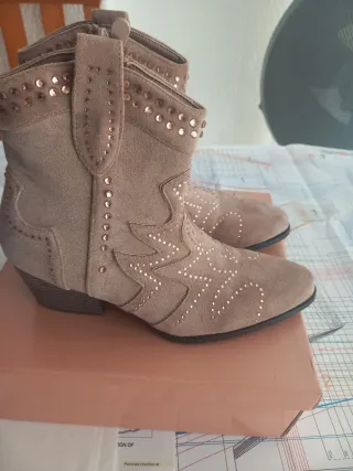 Botines beige con brillantitos Talla 37