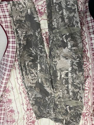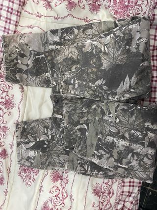 Pantalón de Bershka con estampado de camuflaje. - Diseño con hojas y ramas. - Tonos grises y verdes.