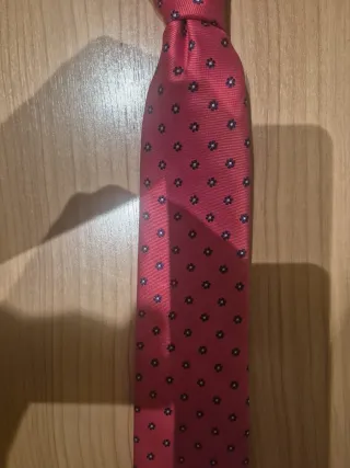 Corbata infantil de la marca Tizas con un bonito estampado. Usada sólo una mañana el día de su comunión - Color base rojo. - Diseño de pequeñas flores azules.