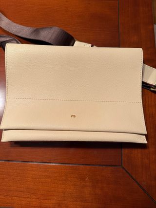 Bolso bandolera de la marca Purificación García. - Color beige con detalles dorados en contraste con color camel y rosa. - Se le puede quitar la bandolera y llevar de bolso de mano. - Diseño elegante y moderno.