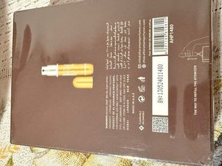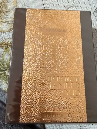 Este es el perfume Al Haramain Amber Oud Gold 999.9 Dubai Edition. - Presentación en caja con detalles dorados y marrones. - Edición especial Dubai. -contiene láminas de oro