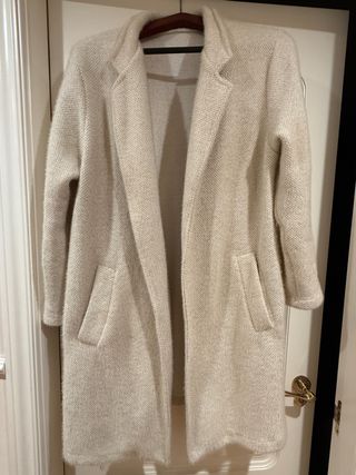 Abrigo largo de punto en color beige. Es una prenda cómoda y versátil. - Diseño abierto. - Bolsillos frontales. - Tejido suave y ligero.