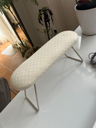 Este reposamanos es ideal para usar durante las sesiones de manicura. Su diseño acolchado ofrece comodidad. - Base metálica estable. - Funda con patrón de rombos.