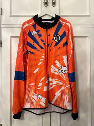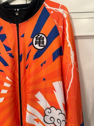 Sudadera con un diseño inspirado en Goku. - Mangas largas. - Cierre de cremallera frontal. - Cuello redondo. - Estampado vibrante con rayos y nubes. - talla disponible l y xl