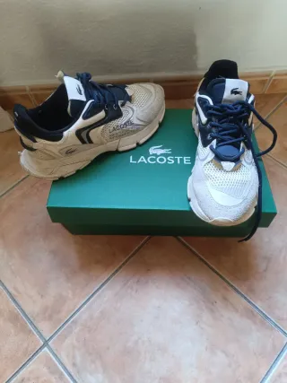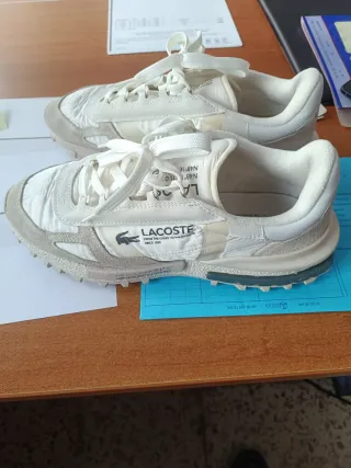 Zapatillas deportivas de la marca Lacoste. -Muy poco uso - Diseño moderno en blanco y azul. - Logo de Lacoste visible en los laterales y la lengüeta.