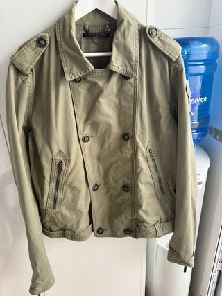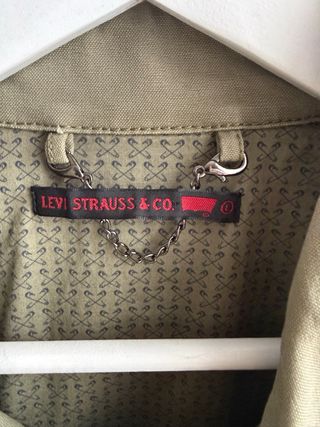 Chaqueta estilo militar de la marca Levi's. - Color verde oliva. - Diseño de doble botonadura. - Bolsillos frontales con cremallera. - Detalles en hombros y cintura.
