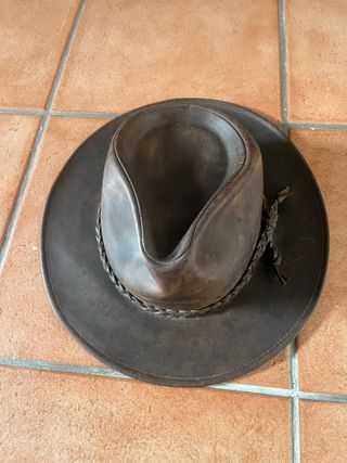 Sombrero de estilo artesanal, con un diseño clásico y atemporal. - Material: Cuero - Color: Marrón - Adorno trenzado alrededor de la base de la copa.