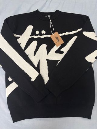 Jersey de punto Stüssy con diseño llamativo. - Diseño de logo Stüssy en blanco sobre fondo negro. - Tejido de punto cómodo. - Corte unisex.