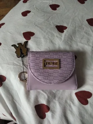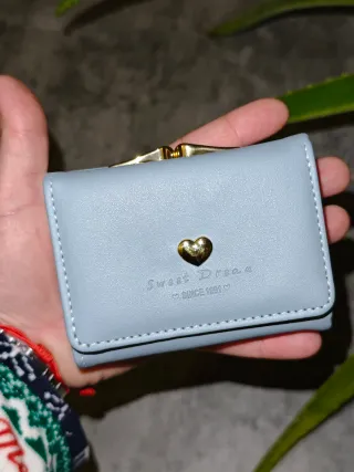 Cartera para mujer con un diseño encantador y detalles dorados. - Color azul pastel. - Adorno de corazón dorado en la parte frontal. - Cierre de broche dorado. - Inscripción Sweet Dream Since 1991. Nueva sin estrenar Envío rápido hoy mismo o mañana 📦✅