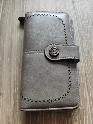 Billetera Fortuna color gris, usada pero muy bien conservada. Costuras firmes, sin roturas ni manchas. Diseño clásico y cómodo, ideal para uso diario. Tiene varios compartimentos para tarjetas, billetes y documentos.