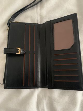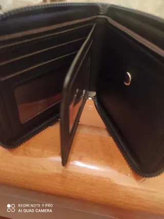 Cartera de la marca Hovi's, con un diseño elegante y moderno. - Material de alta calidad, color negro. - Compartimentos interiores para tarjetas, billetes, monedas, etc - Cierre de cremallera interior y exterior, muy segura.