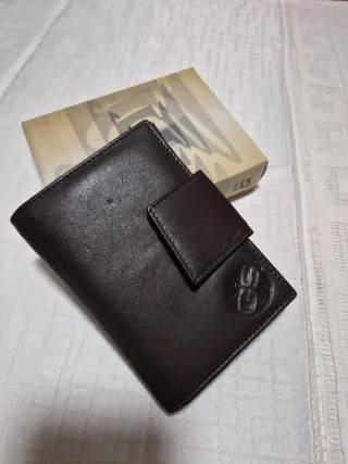 Elegante cartera de piel auténtica en tono marrón. - Diseño clásico y atemporal. - Acabado suave y de calidad.