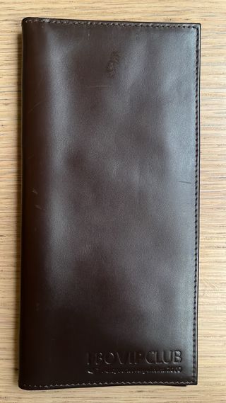 Cartera portapasaporte de piel. - Diseño elegante y funcional. - Acabado en piel de alta calidad. - Grabado FBO VIP CLUB y since 2009 en la parte inferior. Medidas: 21 x 10,50cm