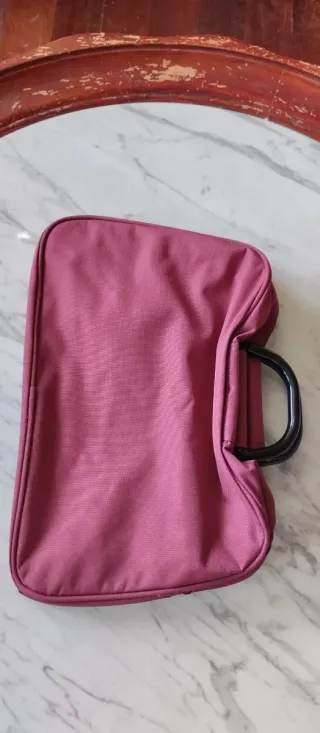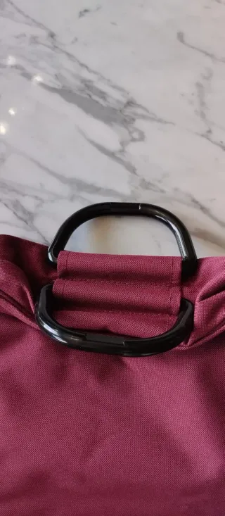 Bolso tipo cartera para mujer en color burdeos. Tiene un asa negra. - Asa negra. - Material textil.