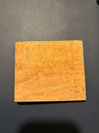 Cartera de corcho con un diseño natural y ligero. Perfecta para llevar tus tarjetas y billetes. - Material: Corcho. - Compartimentos para tarjetas. - Diseño plegable.