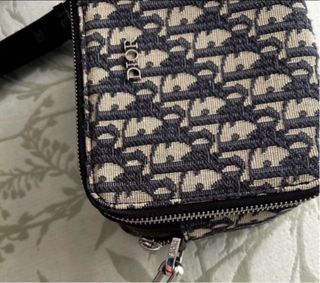 Cartera con el icónico estampado de Dior. - Diseño en jacquard. - Combinación de colores beige y azul.
