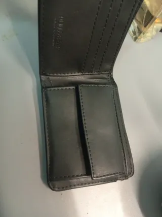Cartera de piel de la marca Tommy Hilfiger. - Diseño clásico y elegante. - Compartimentos interiores para tarjetas y billetes. - Logo metálico de la marca en la parte frontal.