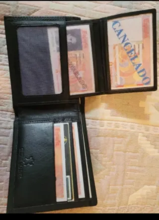 Elegante cartera para caballero, elaborada en piel genuina. - Diseño clásico y funcional. - Compartimentos interiores para tarjetas y documentos. - Acabado de alta calidad.