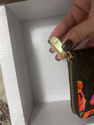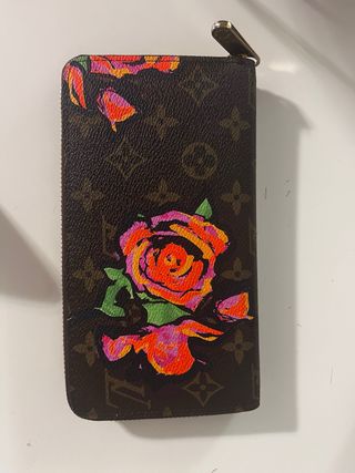 Elegante cartera Louis Vuitton con un diseño vibrante de flores. - Estampado Monogram clásico. - Detalle de flores en tonos rosas, naranjas y verdes.
