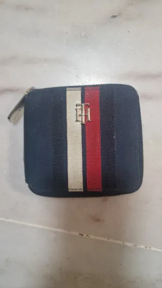 Pequeña cartera con el logo de Tommy Hilfiger. - Diseño con rayas verticales en blanco, rojo y azul marino. - Cierre de cremallera. Esta usada pero en buen estado