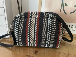 Bolso de mano Bimba y Lola con un diseño tejido y estampado de rayas verticales en varios colores. - Cierre de cremallera. - Correa ajustable. - Logo de la marca en la parte frontal.