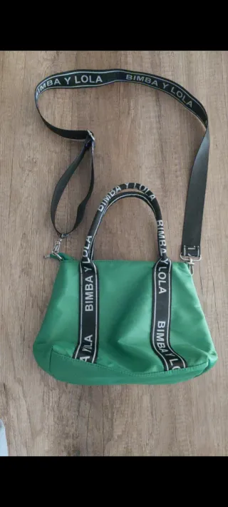 Bolso de mano y bandolera de la marca Bimba y Lola. - Color verde. - Correa con logo. - Cierre con cremallera.Se hace descuento por comprar varias cosas de mi perfil