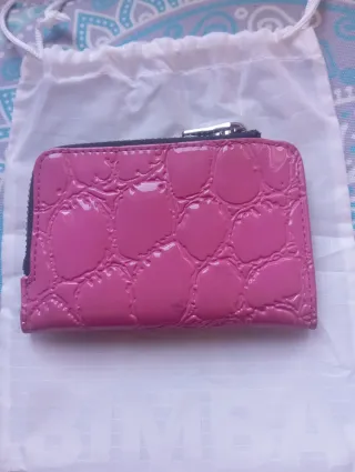 Cartera billetera de la marca Bimba y Lola. - Diseño en color rosa. - Textura granulada. Dentro se aprecia usada y tiene un lateral que enseñó en fotos algo rascado , por el resto está bien