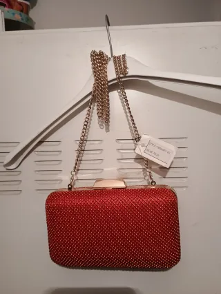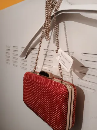 Bolso de fiesta rojo con cadena dorada