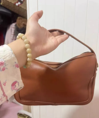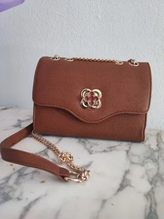 Cartera de mano marrón con detalles dorados