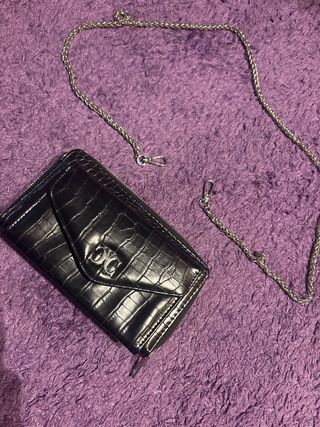 Cartera pequeña negra,cadena, no es de marca