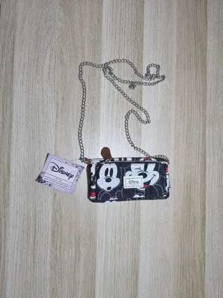 Bolso cartera con estampado de Mickey Mouse. - Diseño divertido y colorido. - Cadena metálica para llevar al hombro o cruzado.