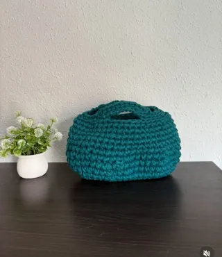 Bolso de mano y hombro hecho a mano con trapillo. - Diseño único y colorido. - Asas de madera. - Cadena dorada con detalles en blanco. La de verde oscura 15 € Verde claro 20€ Multicolor 20€ Color marrón 12€