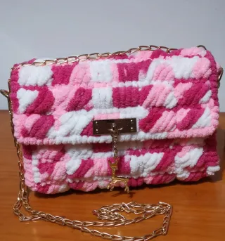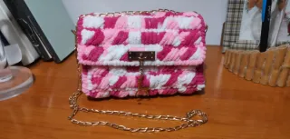 Bolso de mano tejido rosa y blanco