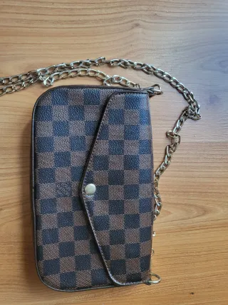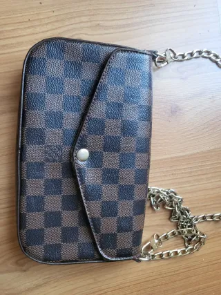Elegante bolso Louis Vuitton con un diseño clásico. - Incluye cartera y billetero a juego. - Cadena dorada para llevar al hombro o cruzado.