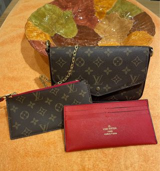 Elegante bolso Louis Vuitton con el icónico estampado Monogram. Hago envíos - Diseño clásico con solapa. - Cadena dorada para llevar al hombro o cruzado. - Incluye un neceser y una cartera a juego.
