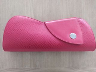 Elegante cartera de mano ideal para eventos especiales. Es de color rosa y tiene un bonito estampado de piel de serpiente. - Diseño sofisticado y compacto. - Asa de cadena dorada - Material con textura efecto escamas serpiente - Tamaño ideal mano pero con capacidad