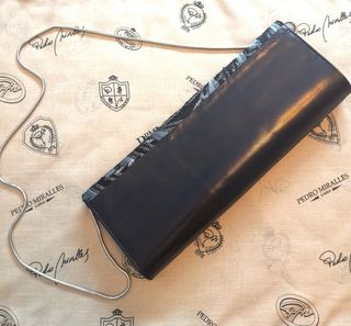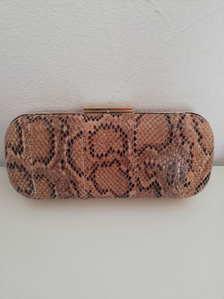 Bolso, Cartera de mano, con cierre nácar, pequeño bolsillo interior y cadena para colgar. No lo he llegado a usar, tiene un pequeño defecto en la parte de abajo, lo compré así y no me di cuenta.