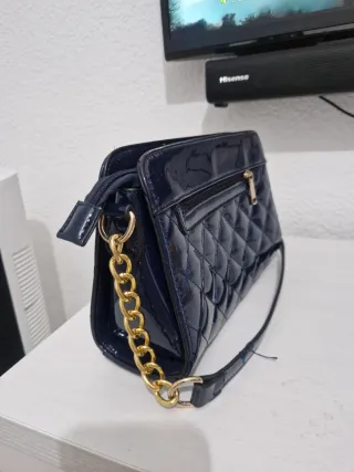 Elegante bolso tipo cartera en azul marino. Precioso lazo decorativo Solo tiene un par de usos, está fenomenal, como se ve en las fotos. Cadena dorada. Ideal para un look formal. 27 x 17