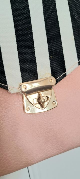 Bonita cartera color rosa y solapa en rayas blancas y negras. Buen estado. 📏 Medidas: Ancho: 29 cm. Alto: 19 cm. 📦 Envío rápido. ✅️Aprovecha el descuento por lote y mira otras cosas interesantes en mi perfil. #suiteblanco #accesorios #carteras #modamujer #oferta #chollo
