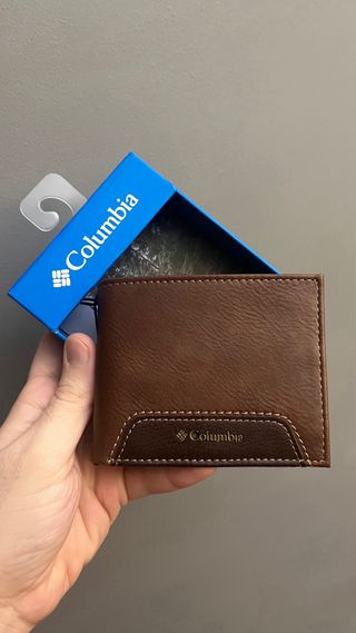 Elegante cartera de cuero de la marca Columbia. Completamente nueva. - Diseño clásico y funcional. - Acabado en cuero de alta calidad. - Costuras detalladas para un toque distintivo.