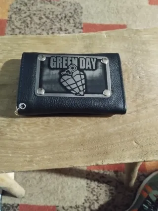 Cartera de cuero con diseño del grupo Green Day. - Con cadena para la trevilla.