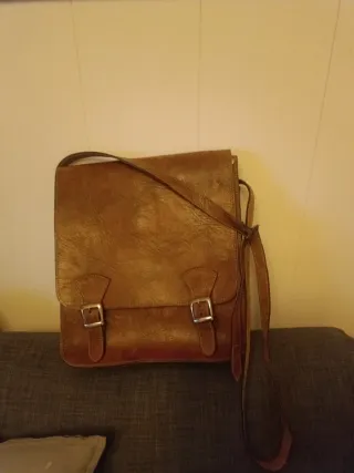 Bolso cartera de cuero con un diseño clásico y atemporal. - Material: Cuero genuino. - Cierre con hebillas. - Correa ajustable para llevar al hombro.