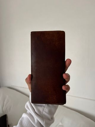 Cartera artesanal de cuero, diseñada para ser compacta y práctica. - Material: Cuero genuino. - Diseño: Compacto y minimalista. - Acabado: Artesanal de alta calidad. -Cosida a mano. -8'5cm x 21'7cm.
