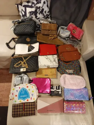 Variedad de carteras y bolsos para mujer. - Diseños acolchados y con cadena. - Estilos tipo clutch y bandolera. - Materiales diversos como cuero sintético y texturas. - Colores variados incluyendo rojo, marrón y blanco como nuevo no se a usado está un poco alguna desgaste de estar guardado precio negociable hago envío rápido y trato en mano alguna duda pregunta sin compromiso.